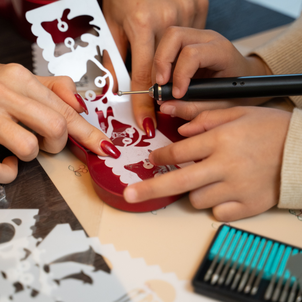 CreativeCarve indgraveringspen gør det nemt at skabe personlige designs i træ, læder, glas og metal.
